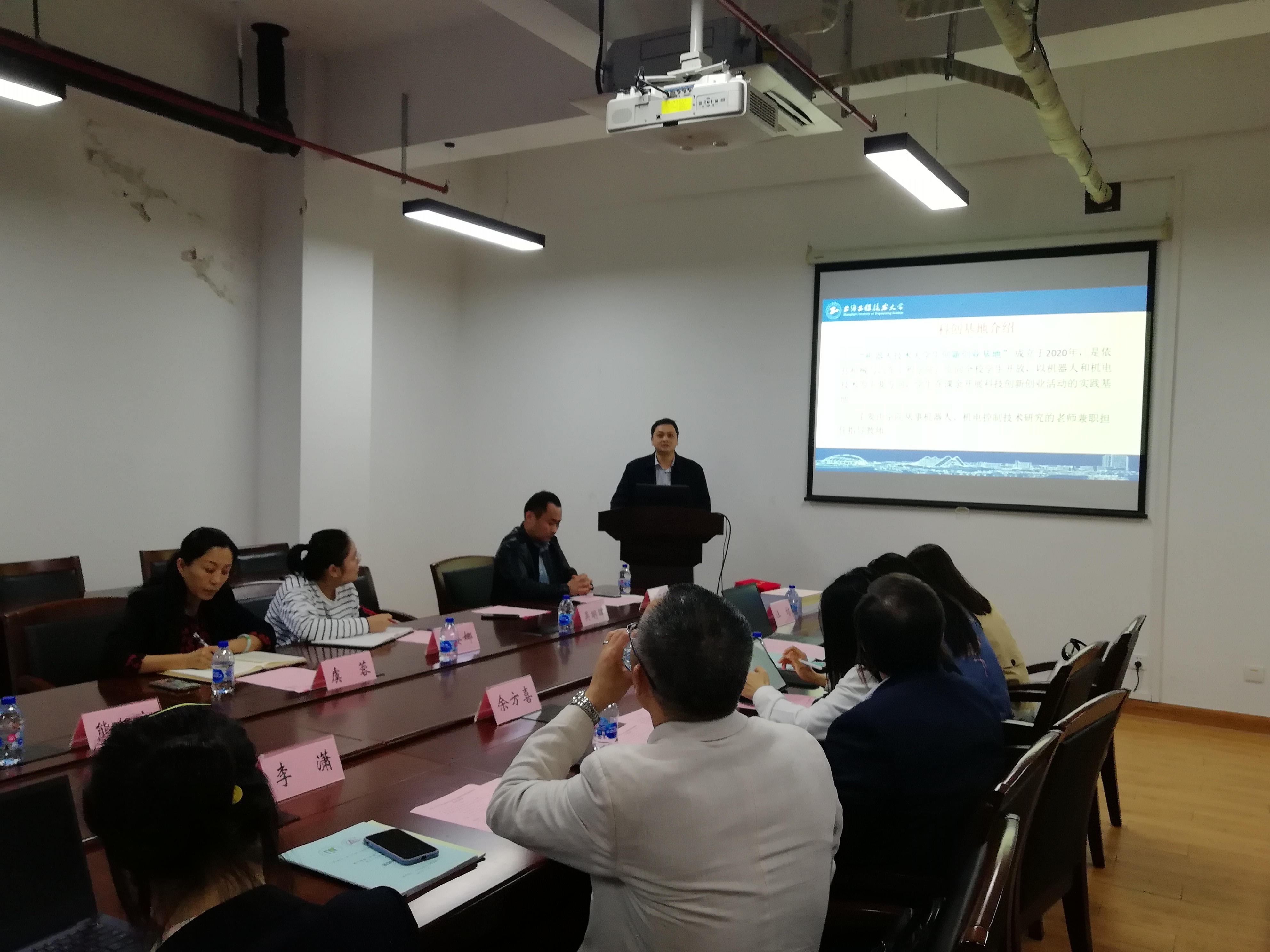汽車科創基地負責人馬西沛老師、機器人技術大學生創新創業基地負責人吳明暉老師分別從基地現有條件、隊伍情況等方面介紹了基地的基本情況。