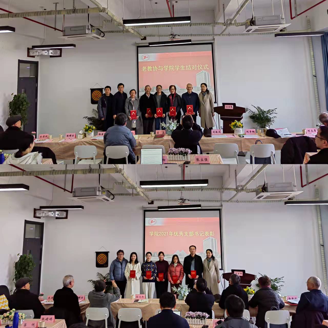 會上,舉行了老教協與學院學生結對儀式。學院班子領導為老教協成員頒發了校內學業導師聘書。離退休黨工委書記孫文鈞為2021年度學院考核優秀的支部書記頒發了榮譽證書,并向獲評優秀的支部書記表示祝賀。