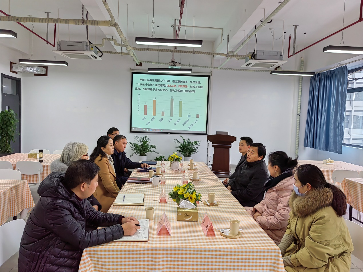 史健勇副書記代表學校向教職工表達誠摯的關心和問候,并詳細了解他們工作生活狀況,勉勵他們要樹立信心,有困難和訴求積極向工會反映,尋求組織的幫助。他表示,工會要立足職責使命,充分發揮好學校學院與教職工之間的橋梁紐帶作用,能繼續做好關愛教職工工作,針對教職工需求,不斷強化服務理念,切實解決好教職工急難愁盼的問題,做教職工信賴的“娘家人”。他指出,學院黨委也要深入基層,聆聽學院教職工的心聲,堅持民主管理,強化服務能級,為轉型發展做好凝心聚力保障。同時要繼續推進教工小家建設,充分發揮陣地作用和場域功能,讓教職工之家充滿溫暖,將工會的橋梁紐帶作用落到實處。