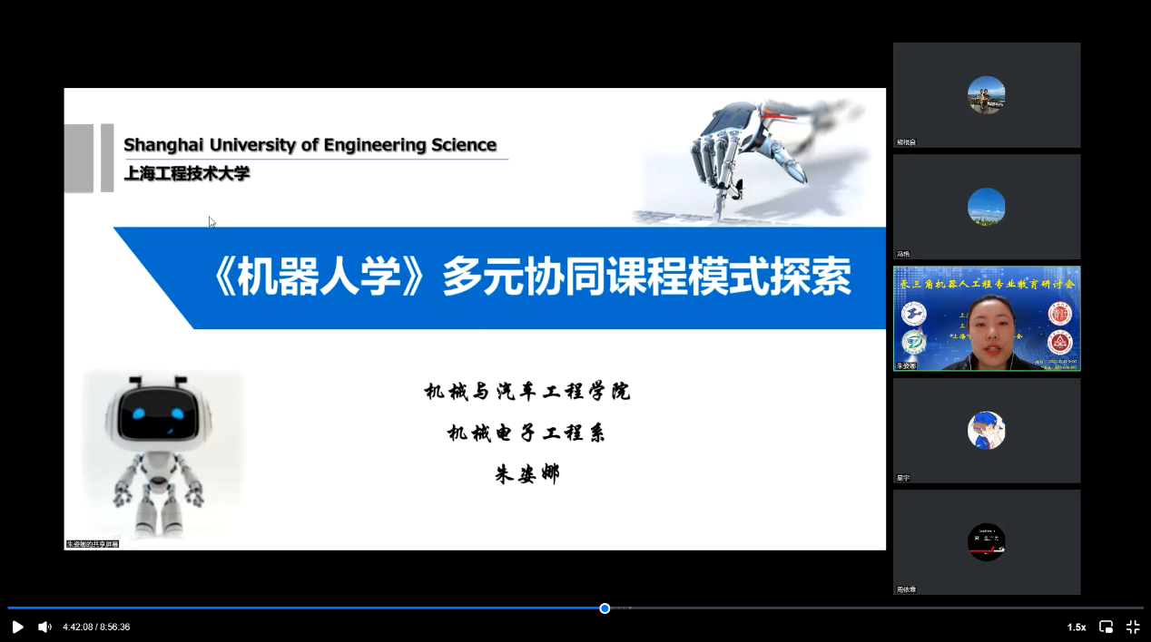 上海工程技術大學機械與汽車工程學院機電系副主任朱姿娜副教授做了《機器人學多元協同課程模式探索》的報告,她從機器人學課程面臨的問題、課程模式的實施與探索、課程已有建設成效、課程后續建設方向等方面進行詳細講述,是對疫情背景下,線上線下多元協同教學模式的有益探索。