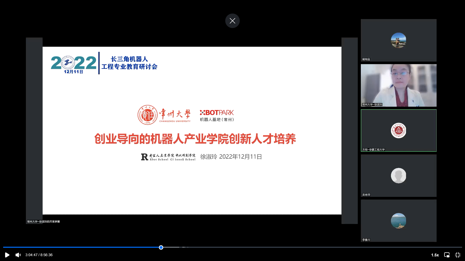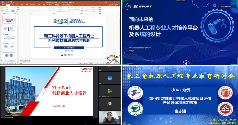 此外,埃夫特中央研究院R2研究中心李浩來研發總監、XbotPark(常州)基地負責人、中以科創學院副院長王豫平、全童科教有限公司秦志強董事長、電子工業出版社高等教育分社劉瑀責任編輯等分別從企業和出版社的角度分別做了《面向未來的機器人工程專業人才培養平臺及系統的設計》、《機器人工程專業創新創業人才的培養》、《如何針對性設計機器人競賽項目評估各階段課程學習效果——以ERCC為例》、《新工科背景下機器人工程專業系列教材階段總結與規劃》的報告。