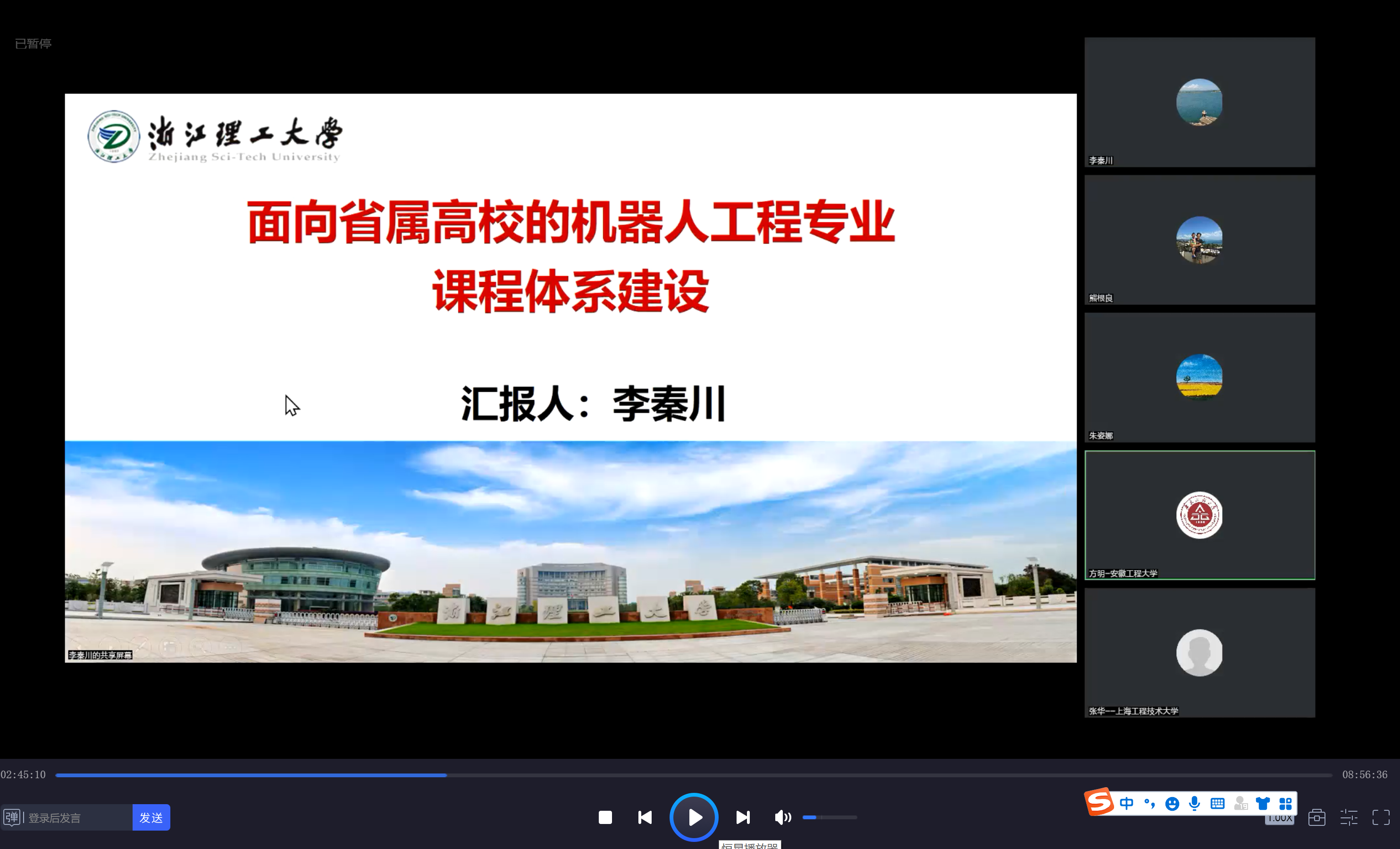 國家杰出青年科學基金獲得者、科技部中青年科技創新領軍人才、浙江省優秀教師、浙江省五一勞動獎章獲得者、浙江理工大學機械工程學院院長李秦川教授以《面向省屬高校的機器人工程專業課程體系建設》為題,介紹了機器人工程專業課程體系存在的問題、課題體系建設的舉措以及課程體系建設的工作重點等,詳細的闡述了浙江理工大學機器人工程專業在課程體系方面取得的卓有成效的工作。