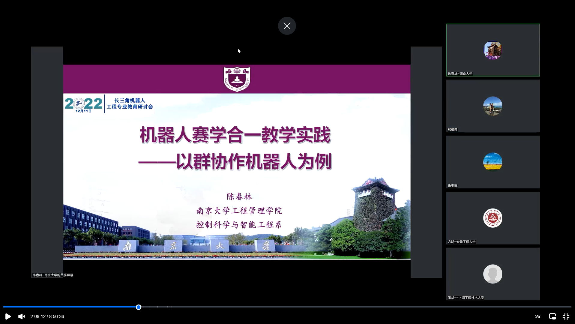 南京大學工程管理學院副院長陳春林教授做了主題為《機器人賽學合一教學實踐——以群協作機器人為例》的專題報告。他以群舞蹈協作機器人為例,從賽學合一、參賽經歷、實踐效果以及整個過程的體會做了深入講解,體現機器人競賽在機器人工程專業人才培養過程中的重要意義。